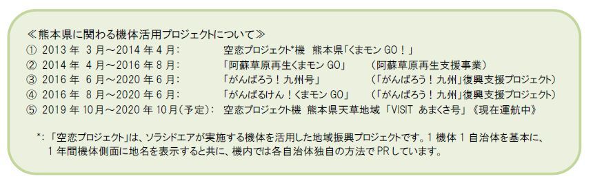 ソラシドエアは九州、特に熊本に何度か災害時や地域振興のために元気をだしてもらいたいという思い出こういったプロジェクトをしてきています。