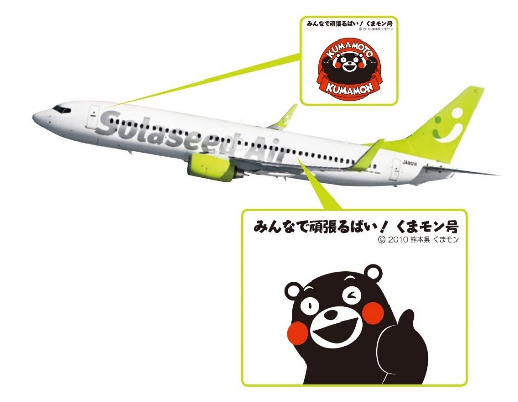 ソラシドエアでは、2013年3月から地域振興・機体活用プロジェクト「空恋」において、熊本県と「くまモンGO!」を運航したことをきっかけに、これまで「くまモン」が描かれた機体を計5機運航してまいりました。